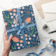 Beautiful pattern featuring assorted flowers and other nature elements on dark blue background.