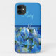 Beautiful blue hydrangea flower case with initials and first, last names.
