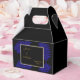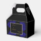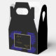 Elegant, glamourous and sophisticated custom wedding favour box for newly weds with beautiful printed images of blue bracken on a black background. In the centre of this pretty favour box is your personal details surrounded by a pretty shiny golden glitter border frame. This is a modern and fashionable design suitable for weddings for any season, Spring, Summer, Autumn or Winter..All text is fully customisable, If you would like help in customising your product please contact me through my store and i will be very happy to help you.