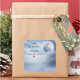 Made with love. kitchen stickers with a magical fantasy sky with fluffy blue clouds and a big beautiful moon. 2 white swans flying off together.