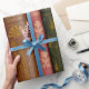 Heavy duty paper. Wish the titles of the books were closer to center so they showed more clearly on a wrapped gift. Finish was a dull color, but still beautiful