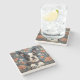 The coasters are gorgeous, a quality feel and heavy weight. They look like a precious archeological find. A rustic stone juxtaposed with a modern floral black and white print. I like the way the print goes slightly imperfect on the cut stone edges giving them a kind-of natural beauty.