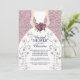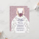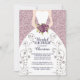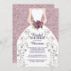 Modern bride bridal shower invitation featuring a bride in a white gown with a faux silver floral swirl accent and a purple bridal flower bouquet set on a classy classic mauve pink faux glitter background. Flip our chic & stylish bride wedding shower invitation over to view a matching glitter back for an extra special touch. Contemporary bridal shower invite for a spring bridal shower, summer bridal shower, fall bridal shower or winter bridal shower. Visit our shop to view this popular bride design in a variety of colours.