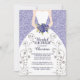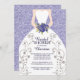 Modern bride bridal shower invitation featuring a bride in a white gown with a faux silver floral swirl accent and a purple blue bridal flower bouquet set on a classy classic lavender faux glitter background. Flip our chic & stylish bride wedding shower invitation over to view a matching glitter back for an extra special touch. Contemporary bridal shower invite for a spring bridal shower, summer bridal shower, fall bridal shower or winter bridal shower. Visit our shop to view this popular bride design in a variety of colours.