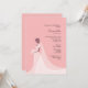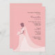 An elegant invitation featuring a beautiful bride in a long, lace, wedding gown. In her hand she holds a white floral bouquet. The card is easy to customise with your wording, font, font colour, paper shape options and choice of six paper types.
