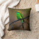 Beautiful Bright Green Bird on a Thin Twig Cushion