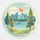 A vintage-style, souvenir image featuring Beautiful British Columbia. In the image you can find mountains, forest, trees, a ferry, the Lion's Gate Bridge, water and the provincial flower: Pacific Dogwood. A great retro image of Canada's BC.
