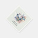 Paper napkins with a trio of butterflies fluttering among some pretty flowers. Blue pink and green colour scheme.
