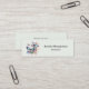 Mini business cards with a trio of butterflies fluttering among some pretty flowers. Blue pink and green colour scheme.