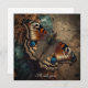 classical picture of a beautiful butterly spreading its wings next to a turquoise pinecone
