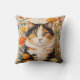 Beautiful Calico Cat With Marigold Flowers Cushion