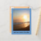 Original, peaceful, romantic colour professional photograph of the beautiful serene coast at sunset taken at the beach in Santa Barbara, Southern California. A bird is silhouetted in the foreground from the setting sun. Makes a great Thinking Of You, Sympathy, Thank You, Missing You, Wish You Were Here, etc. postcard. Easily add any custom text on the front or just delete it.