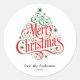 Beautiful Calligraphy Merry Christmas Tree Custom Classic Round Sticker
