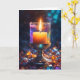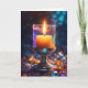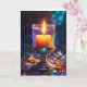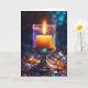 A little candle in a glass jar, surrounded by colourful crystals, gives light on this beautiful holiday card.