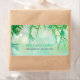 Perfect for your spring or winter wedding! Gorgeous wedding address label with a standard font in two colours — gainsboro green and steel blue — on a background of dew drops on cedar needles and bokeh.