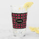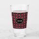 Beautiful black and red square chequered pattern glass. CHEERS text can be customised.