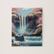 Beautiful Nature Background Consisting of Waterfall, Cherry Blossom Tress, Rocks, and Flower Petals.