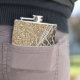The flask itself is fine. It’s a cheap flask, obviously bought in bulk, however am prepared to overlook that. Given that it is a personalized item, I would have liked to have seen gift boxing instead of the generic packaging. Terrible printing, and/or quality. It’s a cheap, tacky vinyl. It is not cut straight and is also applied in a way that it is overhanging the bottom, causing the glue to catch on items and it will eventually roll and tear, damaging the wrap.