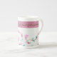 Pink watercolor floral designer china coffee mug with a touch of teal and chocolate. Personalise with your special message.