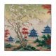Embrace the artistic charm of chinoiserie with this beautifully designed tile. Inspired by classic Eastern aesthetics, the pattern features elegant pagodas nestled amongst flowering trees and vibrant foliage. The soft colour palette and detailed illustration create a visually appealing piece that adds a touch of cultured beauty to your living space.