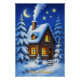 Charming Christmas greeting themed posters for many occasions. An ancient house in the forest covered by snow, in clear starry night. Decorate a wall with this poster for kids party at home or school.