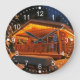 Beautiful Christmas Lights on Log Cabin in Snow Large Clock