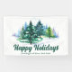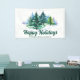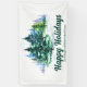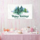 This beautiful custom company holiday party banner features gorgeous green Christmas trees in a winter landscape above your customised business name and Happy Holidays. Personalised holiday decor for a corporation or family.