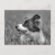 This black and white photo of an alert border collie dog in a cornfield makes a lovely greeting for any dog lover out there.