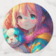 Anime Birthday confetti. Beautiful Anime girl with pastel colours, Colours used are pink, teal, orange, blue, purple and blue. Cute and colourful children's Ai art. generatviecontent