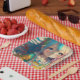 Anime Birthday paper plates. Beautiful Anime girl with pastel colours, Colours used are pink, teal, orange, blue, purple and blue. Cute and colourful children's Ai art. generatviecontent