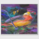 Cool looking image of a colourful bird. Sitting on a tree branch. With a cool blue and purple abstract background. The bird has a multi colour chest feathers. With black wings. And a orange and blue tail.Click the Customise It button to add your own text or images to create a unique one of a kind design! Get creative and use this fun patterned paper for more than just gift wrap. The possibilities are endless!