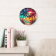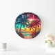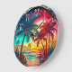 This beautiful clock is a great way to add a reminder of your favourite beach vacation to any room. Featuring colourful palm trees, sand dunes, and a calming ocean in the background, this clock captures the essence of a beach paradise. The vibrant colours and intricate details bring a touch of the tropics to any wall, creating a relaxed and inviting atmosphere. Perfect for a beach-themed room or a reminder of a special vacation, this clock is sure to bring a bit of sunshine to any space.
