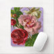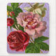 This is a beautiful vintage rose illustration with a background of purple lace texture.