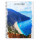Colourful watercolor artwork on a Spiral Notebook that is featuring a coastal view on the beautiful Greek travel destination of Kefalonia in the ionian sea. Colourful greek vacation souvenir for every tourist and fan of the popular european destination in the Mediterranean Sea. Purchase now.