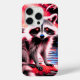 A gorgeous racoon woodland animal is transformed with vibrant red to highlight beauties in a different way. With red sparkles for eyes and crimson-kissed foliage of the woods behind the fuzzy angel, this is an iPhone 15 Pro (other cases available) like no other!