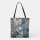 A beautiful light blue haired fairy with pearlescent wings wearing a pretty turquoise and white dress holds a sprig of holly while surrounded by holly leaves and berries. The text can easily be changed or deleted if you would like the picture without text.