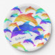 Beautiful Dolphins in Rainbow with First Name Paper Plate