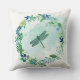 Throw Pillows | A beautiful dragonfly with a border made of a mix of blue, teal and green watercolor painted flowers and butterflies. Perfect gift for the gardener or dragonfly collector! Design by Jenn's Emporium.