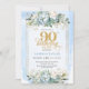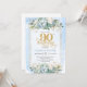 Beautiful dusty blue and gold 90th birthday invite