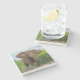 The coasters are gorgeous, a quality feel and heavy weight. They look like a precious archeological find. A rustic stone juxtaposed with a modern floral black and white print. I like the way the print goes slightly imperfect on the cut stone edges giving them a kind-of natural beauty.