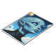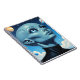 Ufology Notebook. A beautiful female alien extraterrestrial being with big blue eyes looking up into space at the stars and planets.