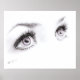 Charcoal and coloured pencil drawing of beautiful woman's eyes. Minimalist art.