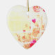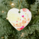 Faded flowers are on the front and more faded flowers are on the back of a heart-shaped ceramic Valentine tree ornament.