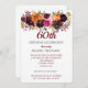 Beautiful Fall colour floral 60th birthday party invitations for a Fall birthday. Magenta, orange and burgundy fall flowers and easily personalised invitations for a Fall birthday.