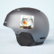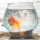 This sticker showcases Oliver, a fantail goldfish, as he swims with a surprised grin in fish bowl near Pacific Ocean, San Diego, California