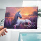 Make your loved ones feel extra special on their birthday with this stunning Unicorn birthday card! Featuring a dreamy pink sunset scene, this card is the perfect way to show your affection and wish someone a joyful day. Show them how much you care with the magic of a Unicorn and make their day unforgettable! The fantasy unicorn birthday card by Shy Shy Panda is an exquisite design that will make any birthday extra magical. Hand-painted details create a fantasy art style that is both delicate and detailed. The realistic-looking scene is printed on Light White uncoated paper with a matte finish and eggshell texture. Easily write on the 17.5 pt thickness / 120 lb weight / 324 GSM paper without any worry of smudging. The Birthday Card measures 7"x5" and is printed with a full-colour CMYK print process. The perfect combination of pinkish, orange, and white colours create a truly inviting card. Make any birthday special and unforgettable with the Fantasy Unicorn Birthday Card by Shy Shy Panda. Get yours today and give a truly unique and magical gift!