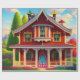 Beautiful farmhouse in the countryside with pretty flowers trees in the garden. Original art by Gifts_AtTheCorner Mjm©2023.