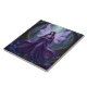 A beautiful fairy wearing a flowing purple dress and a necklace made of amethysts with violets in her long purple hair and light purple dragonfly-like wings holding a violet stands in a magical forest surrounded by colourful mushrooms, flowers and mossy, vine-covered trees.