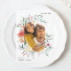 This pretty wedding save the date announcement features colourful watercolor blooms and delicate soft peach, ivory white, and pink flowers, with subtle green leaves on a white background which add a soft beauty to this romantic design. A beautiful arch shape photo sits in the middle of the card. Shop this store for coordinating wedding invitations.
