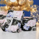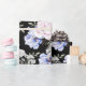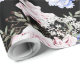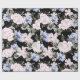 This product boasts a beautiful floral pattern with roses, Iris, and greenery on black background - Colours: pink, blue, green, black, white